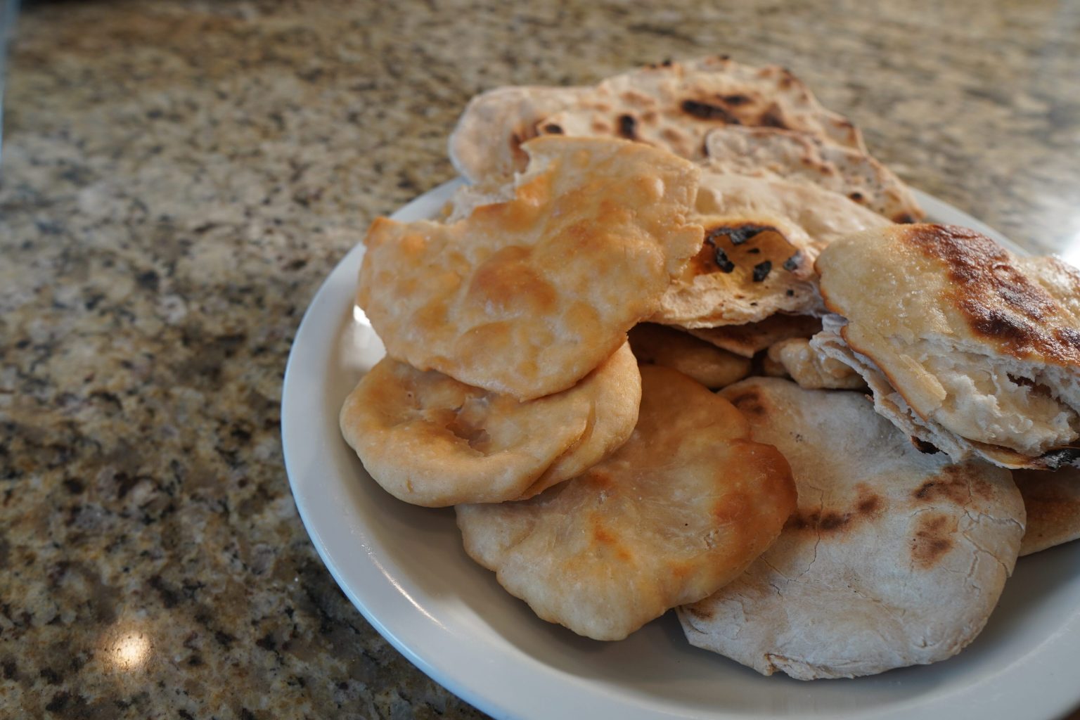 Cook the Flatbread: Check the temperature of your pan by dropping a small amount of water on it. It should sizzle and evaporate quickly. You want the pan to be as hot as possible to facilitate the swift cooking.