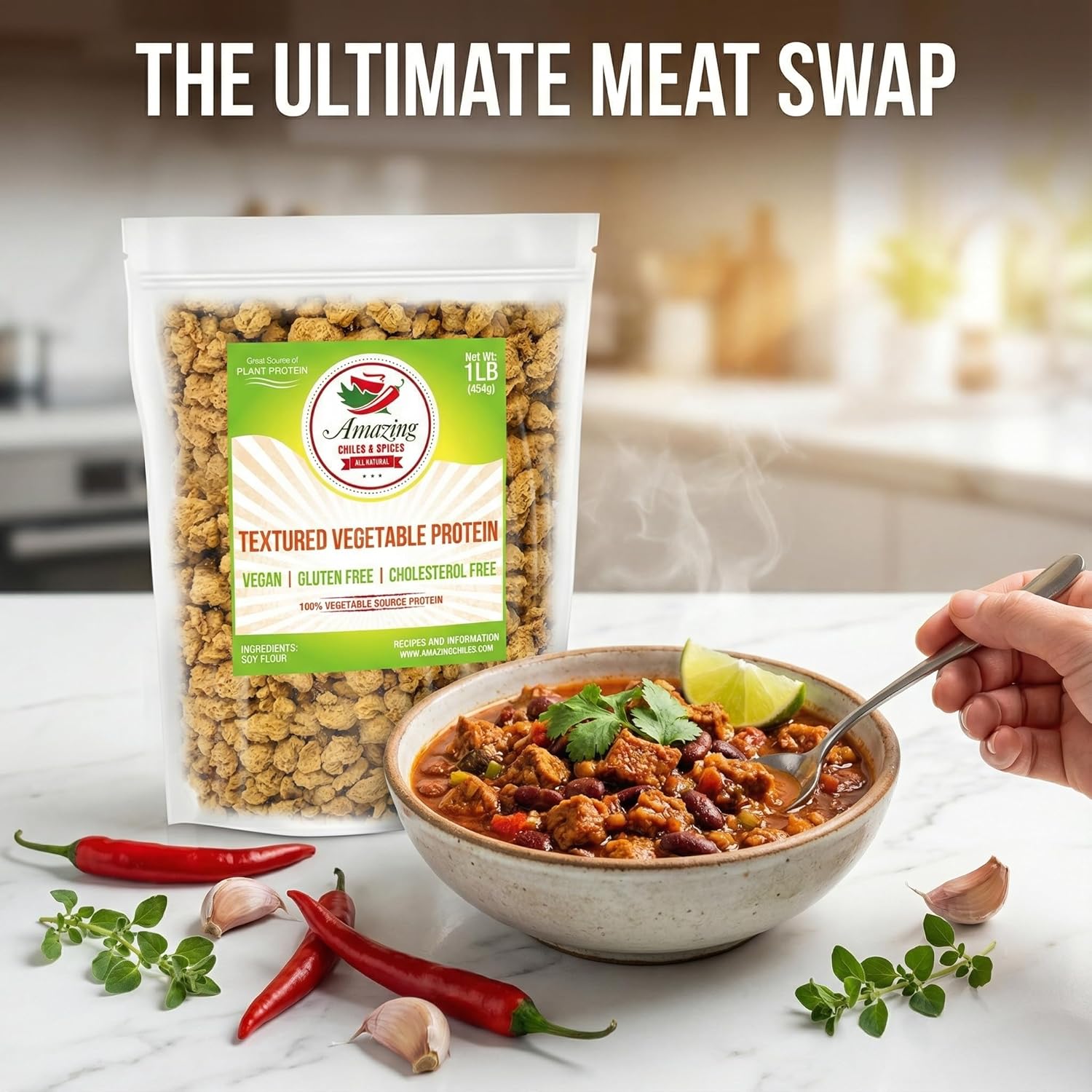 - TVP Chili: Add rehydrated granules to your favorite chili recipe for a “meaty” texture.